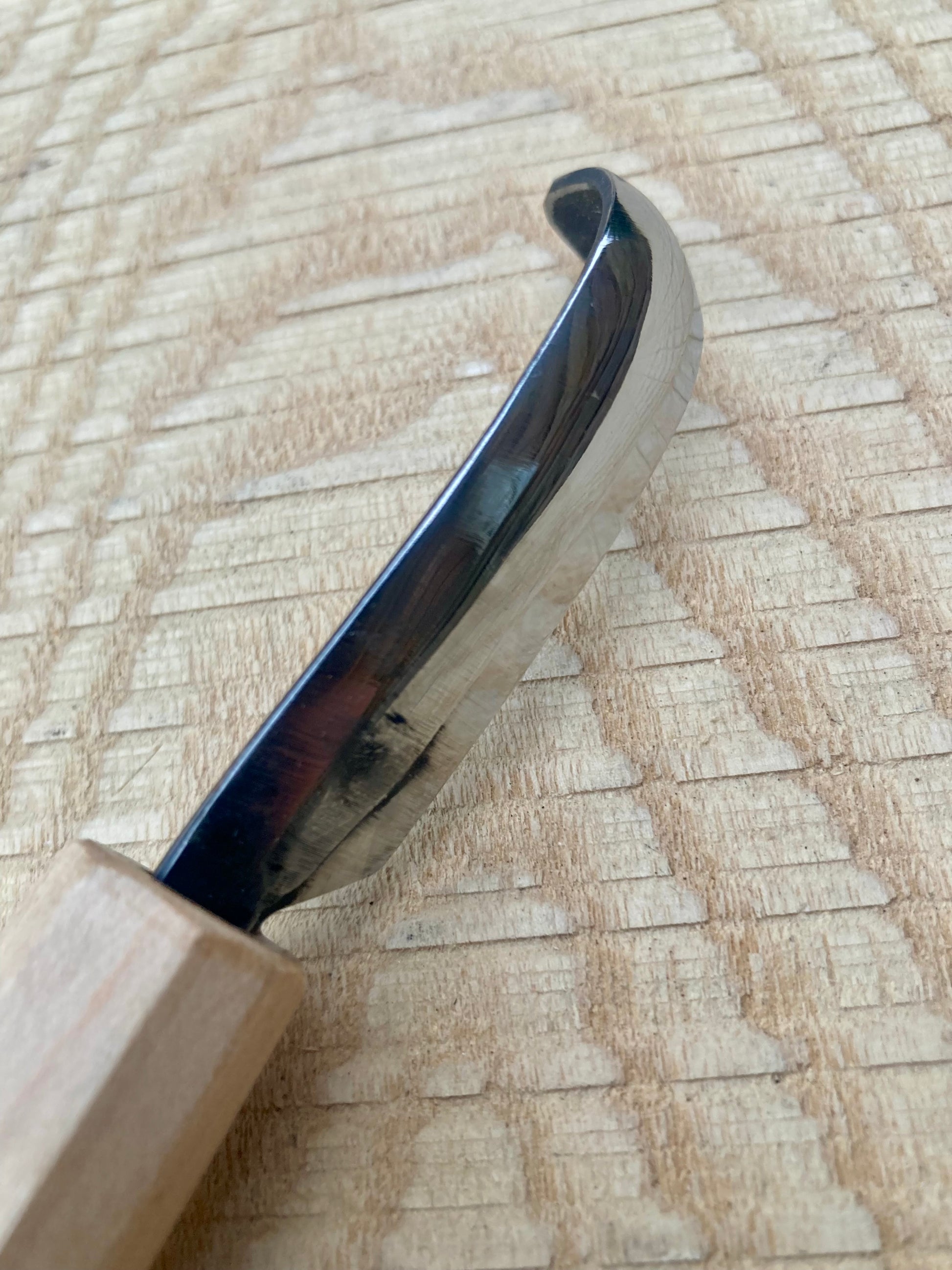 Rounded on the back with tramlines on the inside to make sharpening easy.