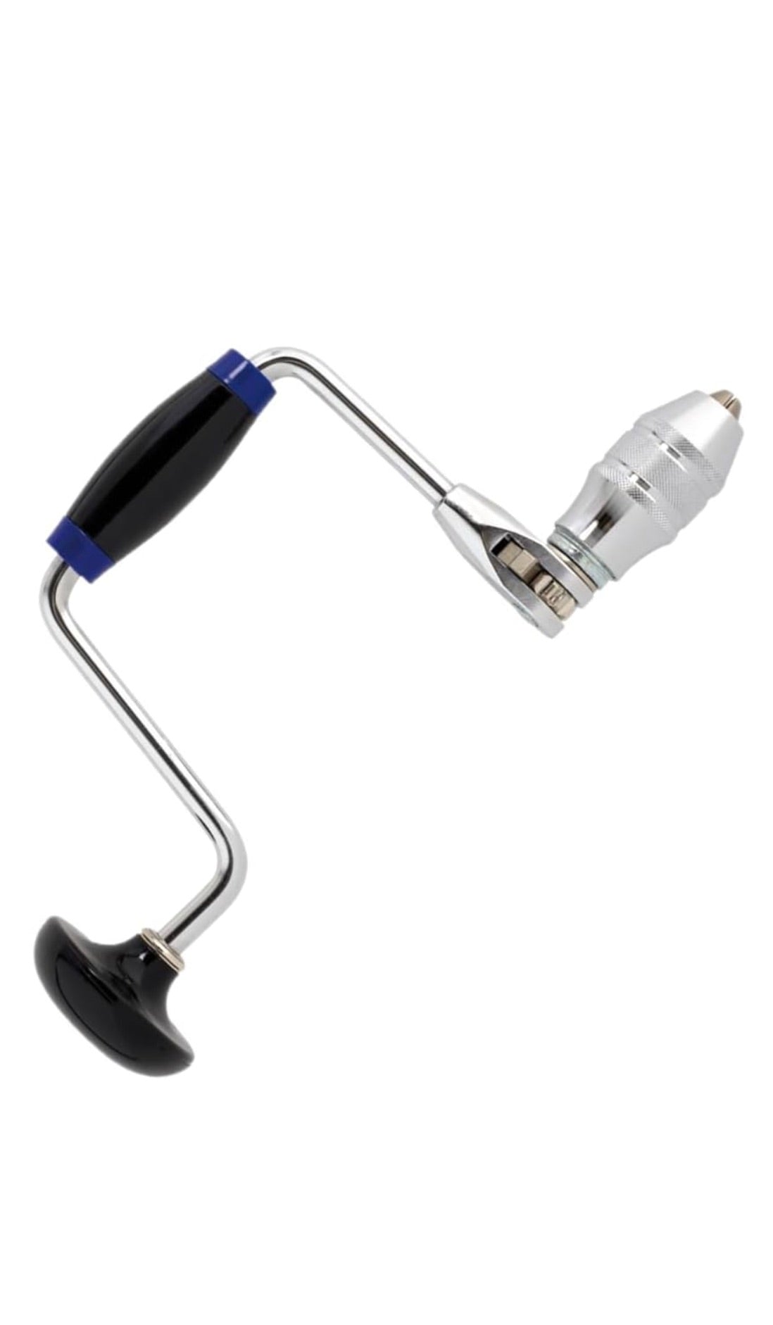 A traditional carpenters brace ideal for use with auger, flat and standard drill bits.