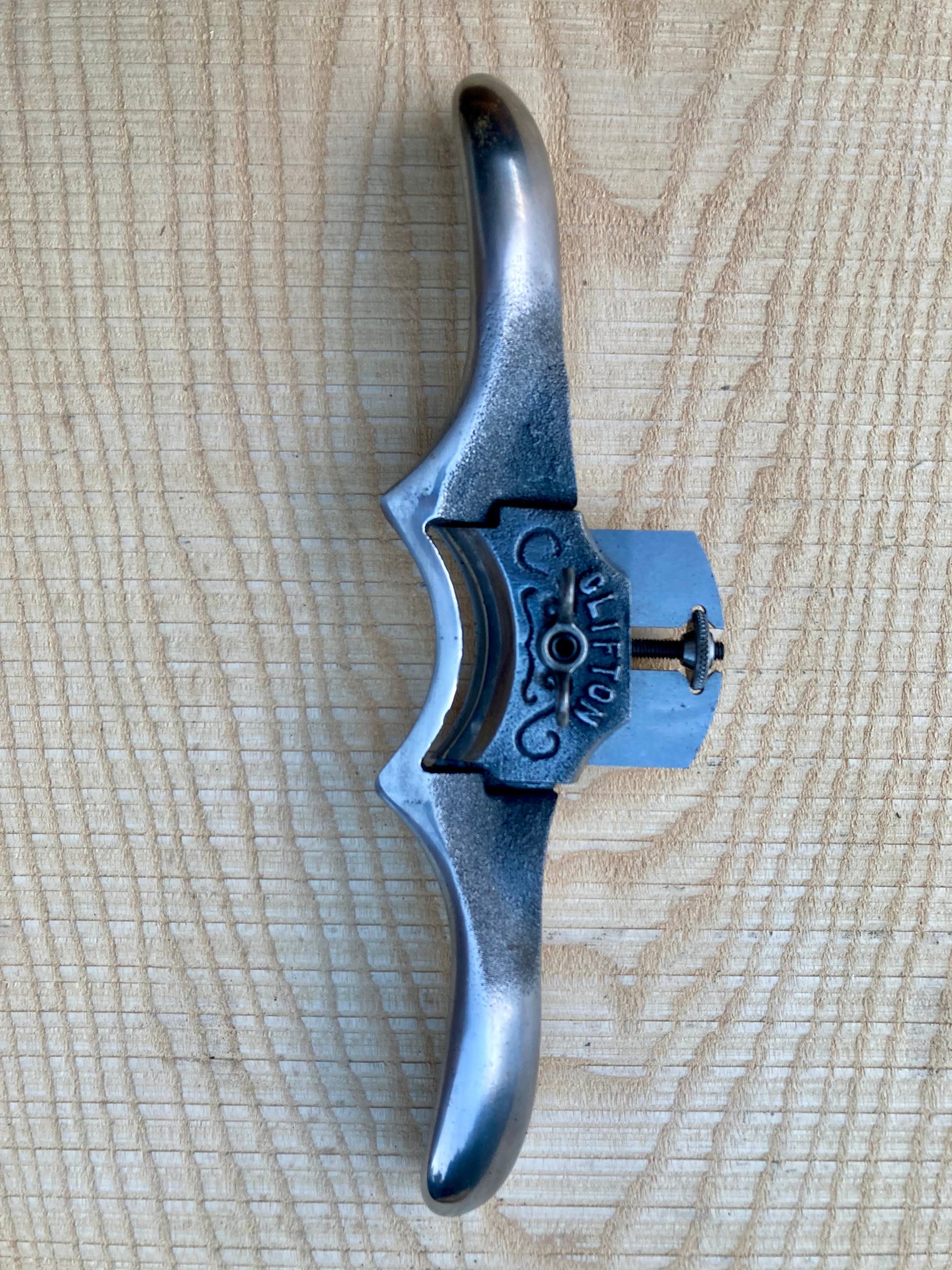 Clifton Spoke Shaves are made out of virtually unbreakable spheroidal graphite / malleable iron, the surfaces are finished and polished to give maximum comfort in the hand; the weight and balance permites the Spoke Shaves to sit firmly on the wood so that only a stroking action is required to make them cut. The firm seating and fine adjustment allow the woodworker to make delicate nuances in the weight of cut.