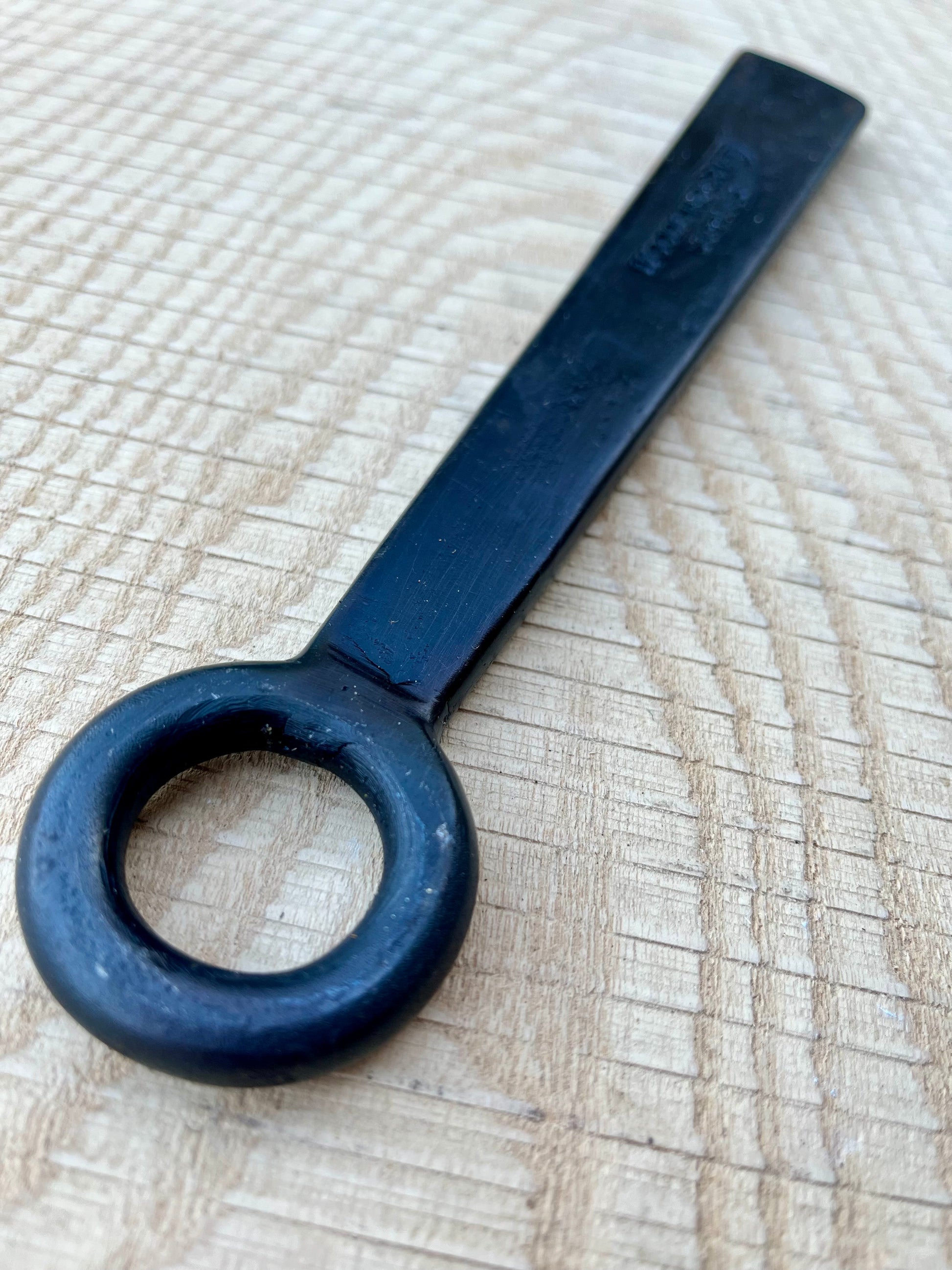 Hand made to our exacting standards, this 400g wrapping iron has a comfortable rounded eye, making it easy to hold and swing, but also useful for bending stubborn rods. The business end of the iron has slightly rounded corners so as not to mark the willow.