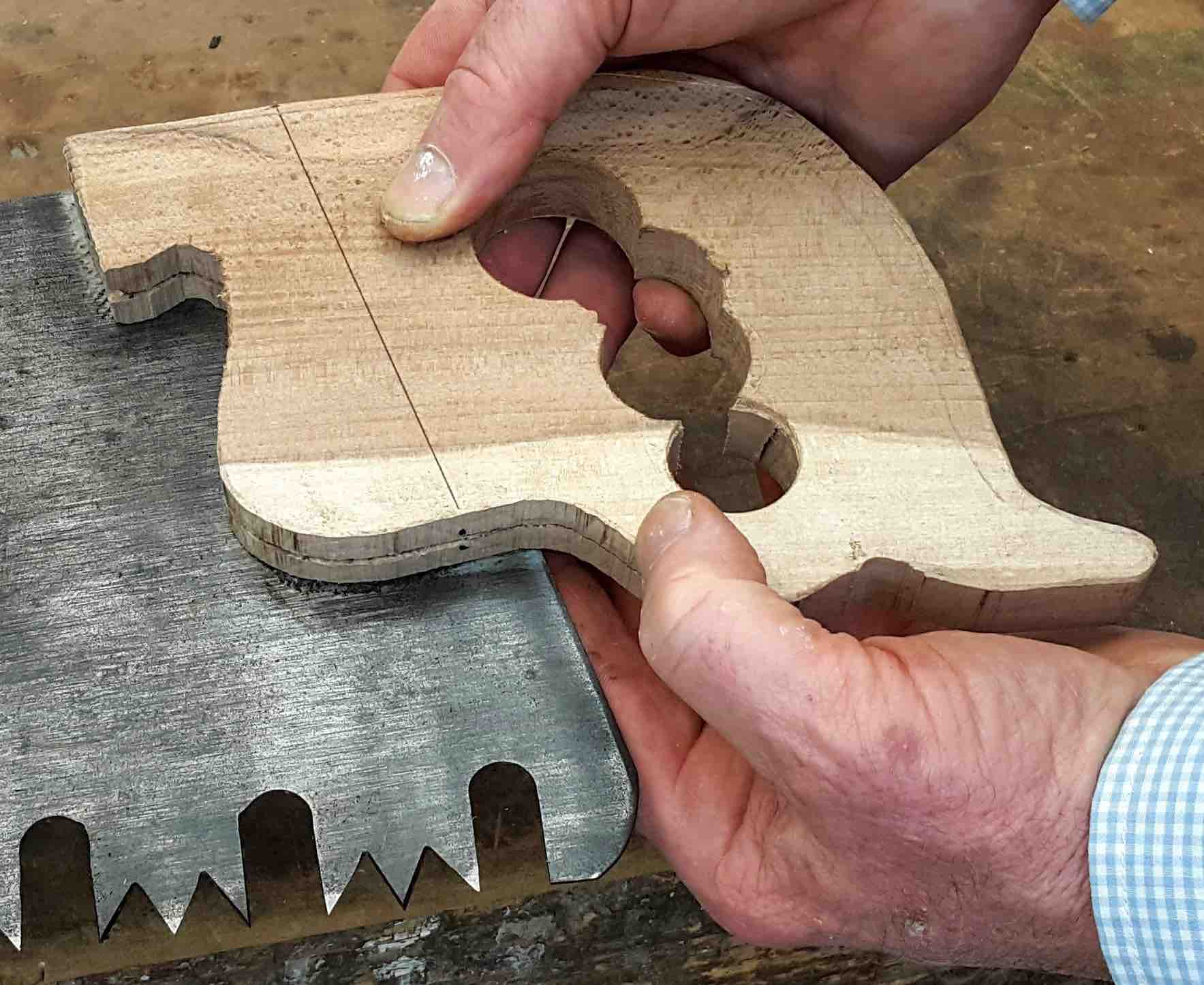 This handle-blank is slotted and ready for insertion of a sawplate. Fixings of 4mm bolts and tee-nuts included.
