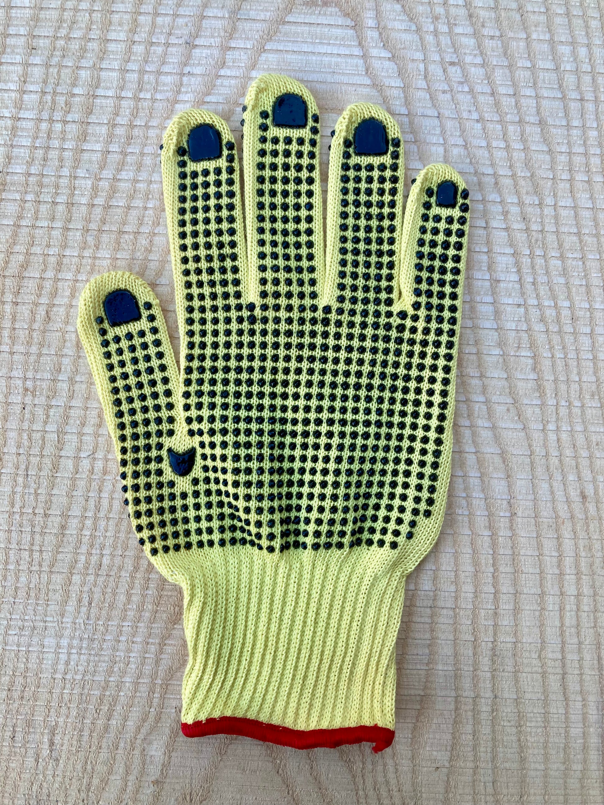 This ambidextrous kevlar glove offers level four cut protection and has rubberised dots for extra grip.