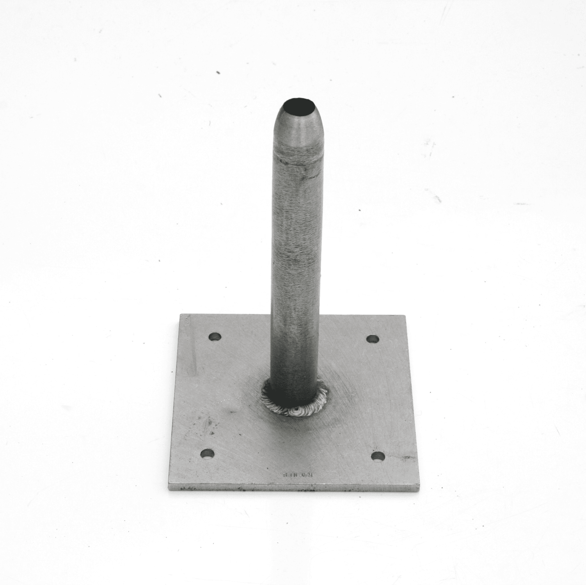 A tine cutter is used to turn square cleaved pegs into round tines, ready to fit into a rake head. Simply hammer the square peg through the tine cutter with a wooden club or mallet to produce perfectly round tines.