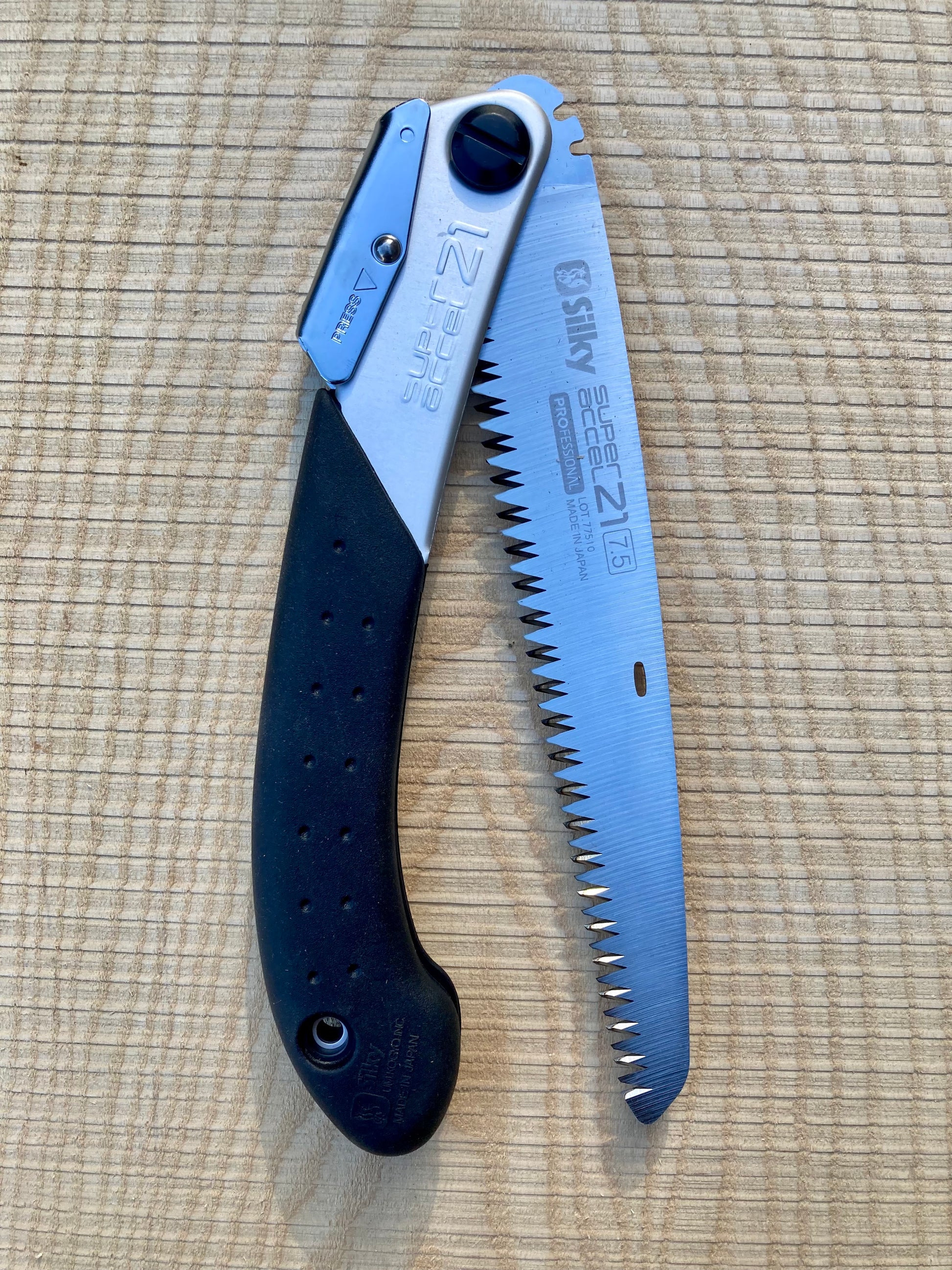 The Super Accel 21 is a very popular lightweight folding saw with a versatile 210mm length blade. The saw is designed for general pruning and is happily used by professional arborists and amateur gardeners alike. It is also popular with campers and those enjoying the great outdoors.